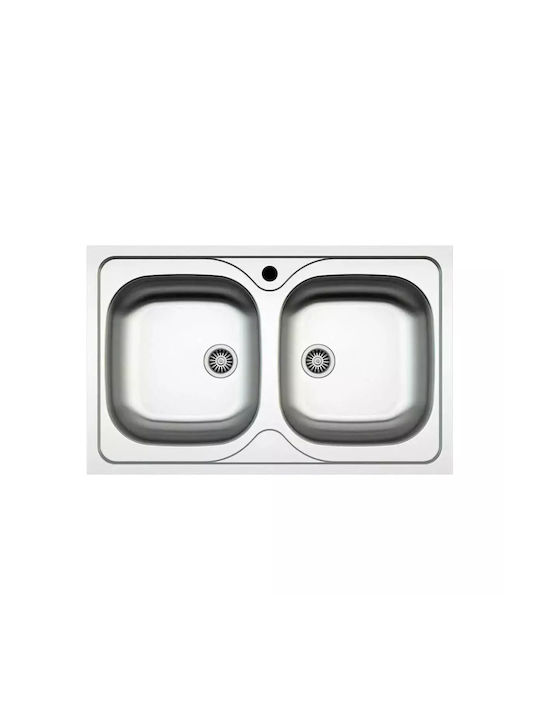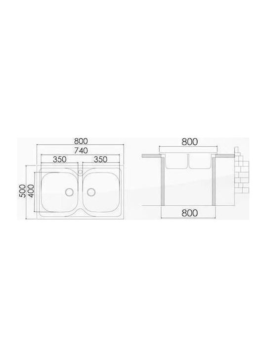 - Ανοξείδωτος ένθετος νεροχύτης με δύο γούρνες, INOX λείο της EXCEL
